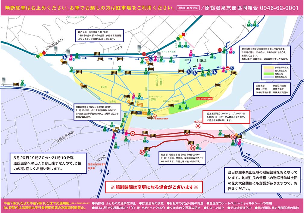 ※19:30~21:30の間は駐車禁止及び車両通行止めの規制がありますのでお早めにご来場ください。