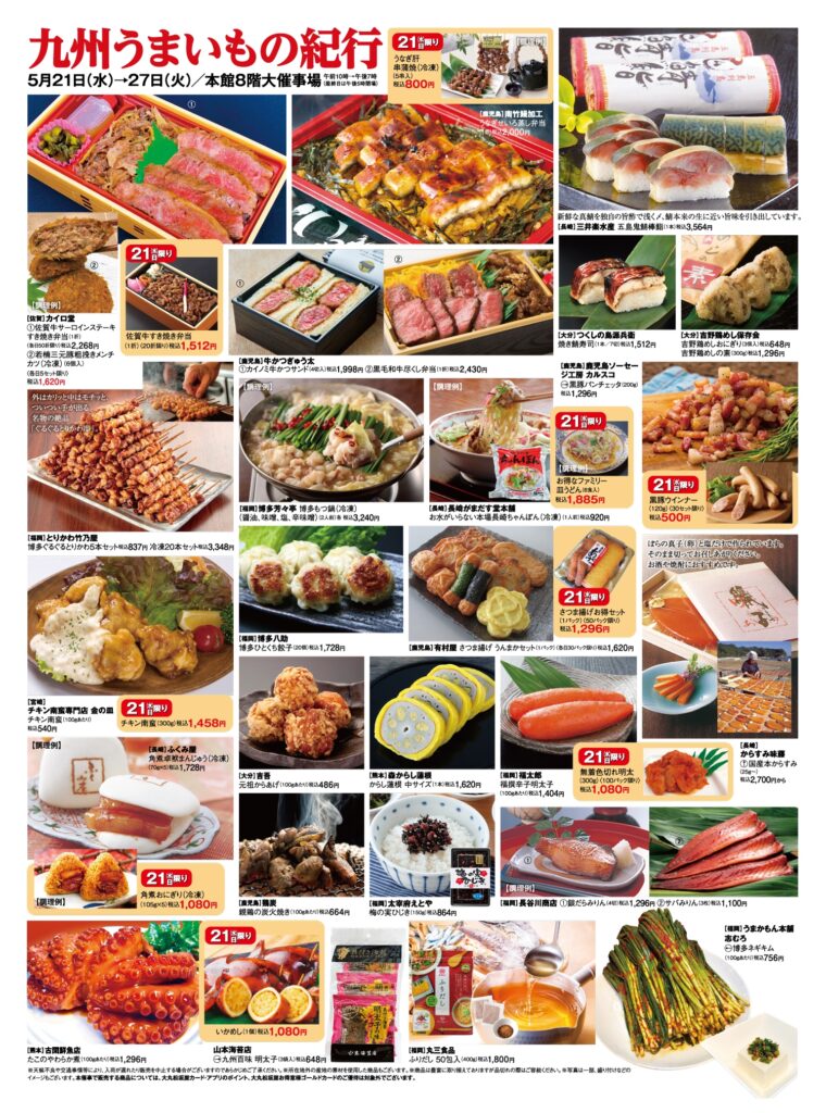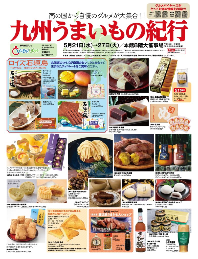 2025年5月21日(水)〜5月27日(火)まで、松坂屋静岡店で「九州うまいもの紀行」が開催されます!