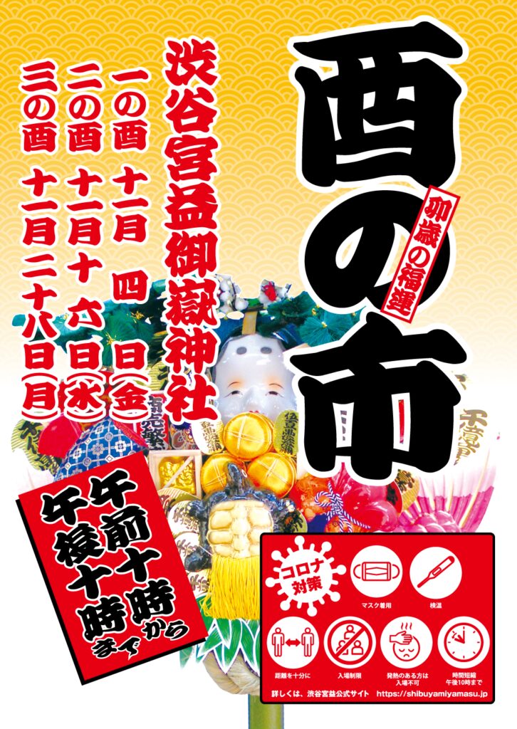 2025年11月4日(金)・11月16日(水)・11月28日(月)に、渋谷宮益御嶽神社で「酉の市2025」が開催されます!