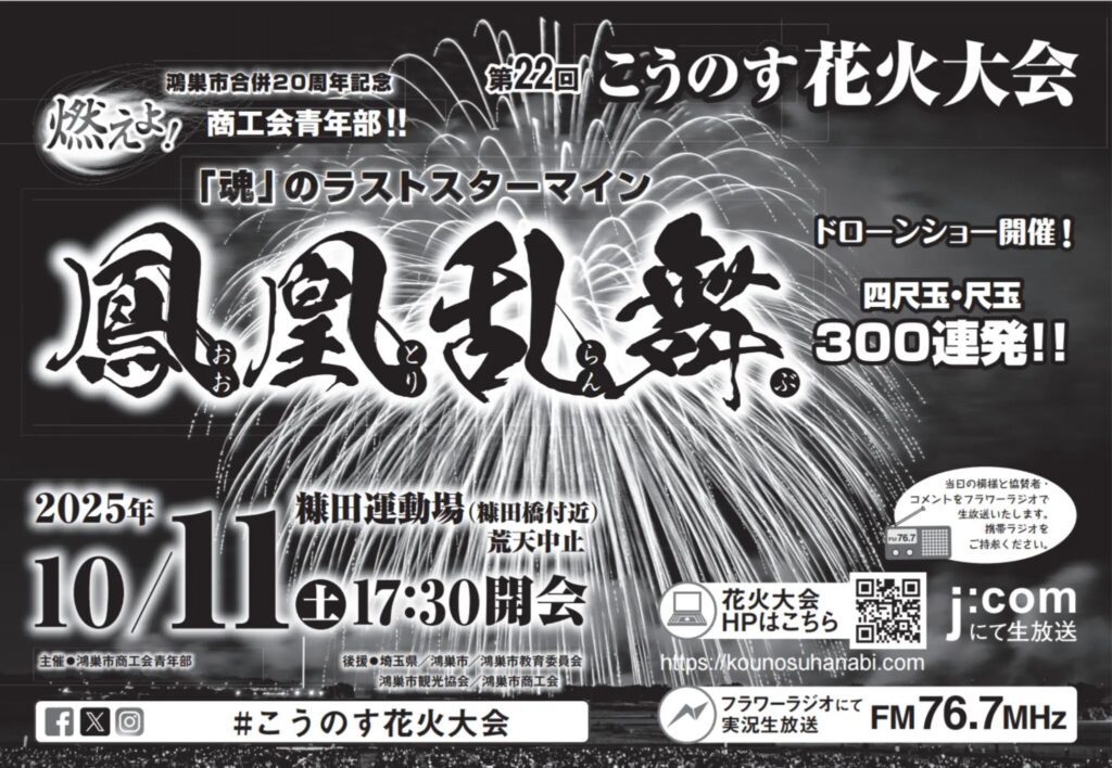 2025年10月11日(土)に、糠田運動場で「こうのす花火大会2025」が開催されます!