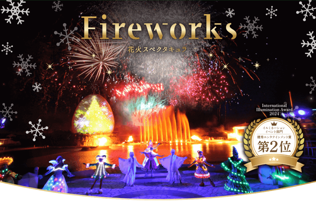 ラグーナテンボス ラグナシアで「花火スペクタキュラ ラ・レーヴ・デ・ノエル2024」が12/21(土)~12/25(水)に開催!【有料席・屋台・駐車場など】