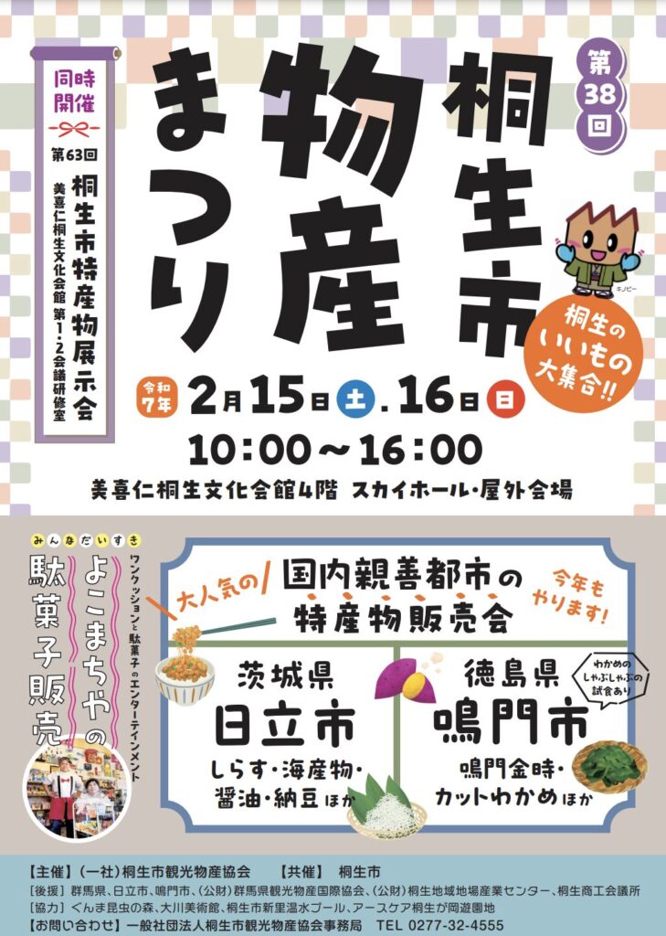 美喜仁桐生文化会館で「第38回 桐生市物産まつり」が2025/2/15(土)・2/16(日)に開催!